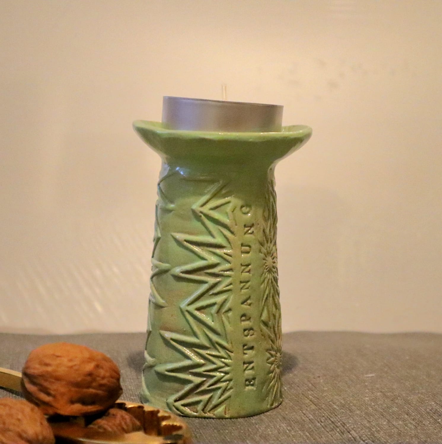 Sie ist kombiniert mit Holz und in diesem Fall noch mit einer Kerze.