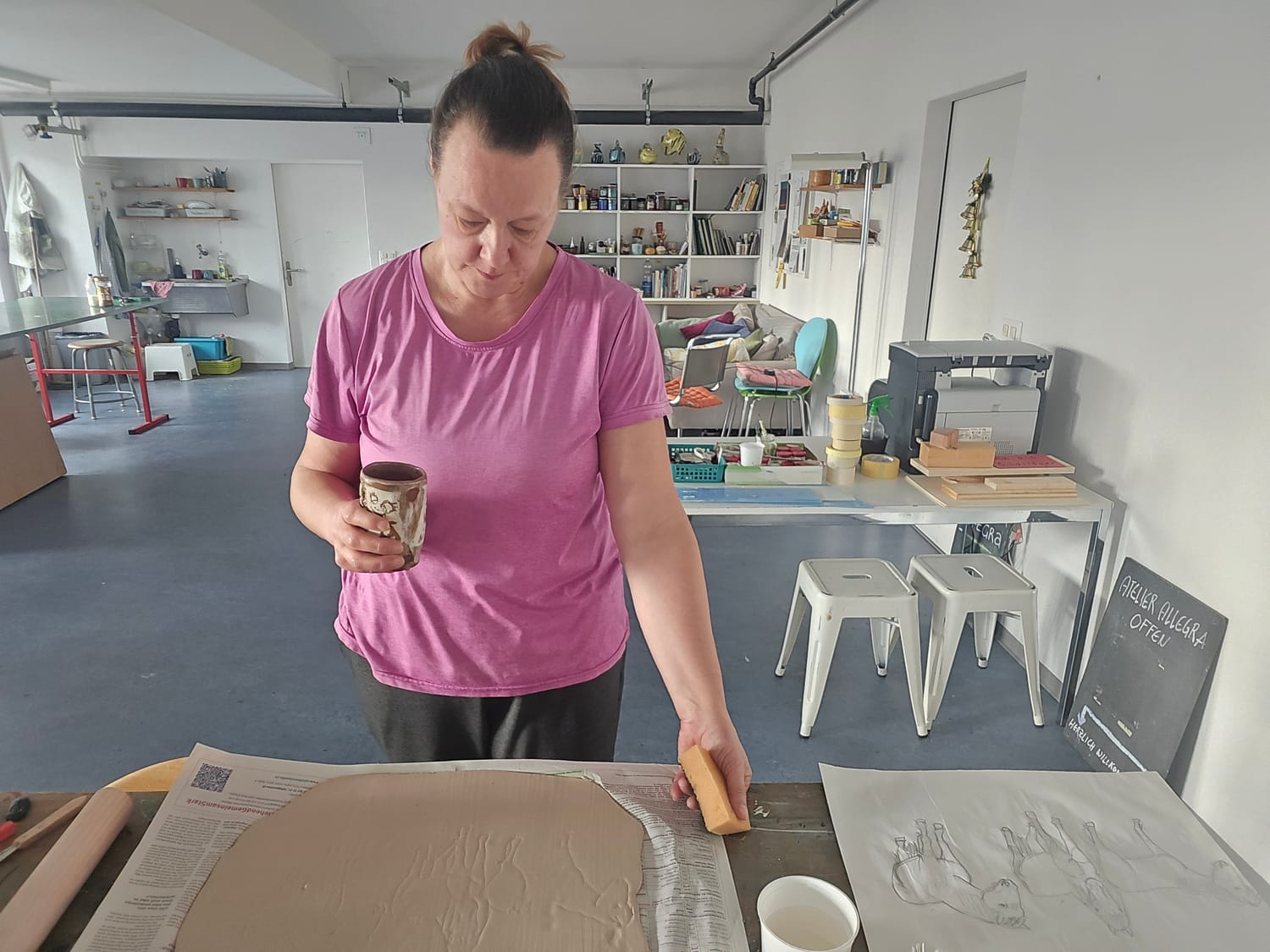 Sobald das Relief fertig gebrannt ist, kommt das Bild dazu.