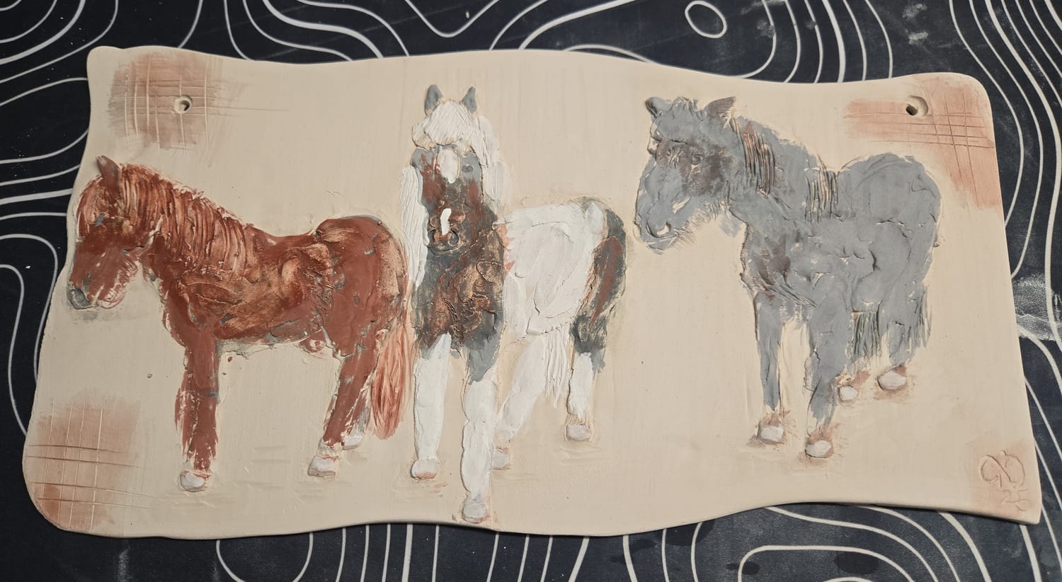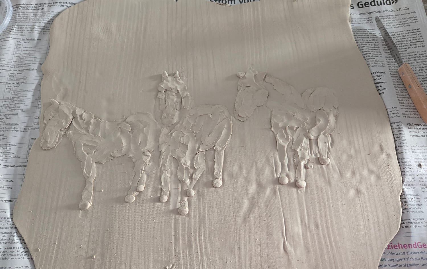 Schon vor längerer Zeit habe ich begonnen, mir erste Gedanken zu Pferdeskulpturen zu machen. Doch was ich bis jetzt von anderen Künstler*Innen gesehen habe, war so perfekt, da würde ich noch nicht rankommen. Aber ich wollte unbedingt eine Tonarbeit mit Pferden herstellen. Eine vage Idee hatte ich schon.