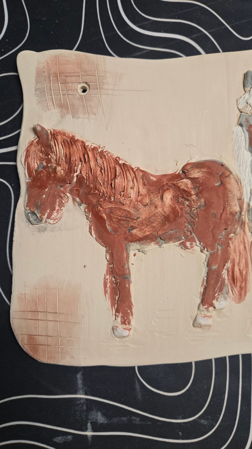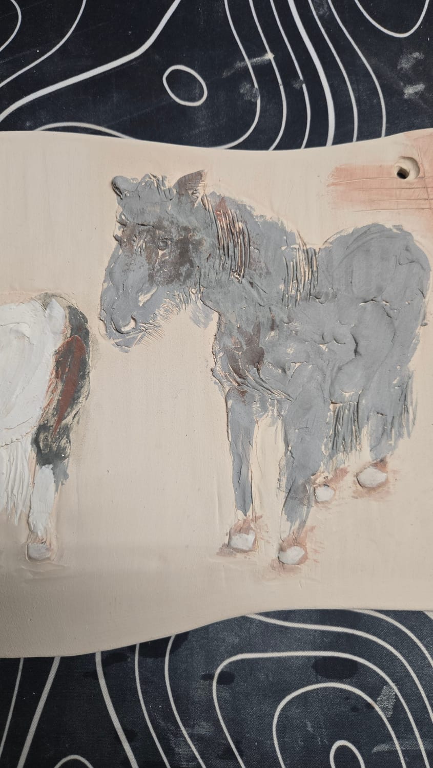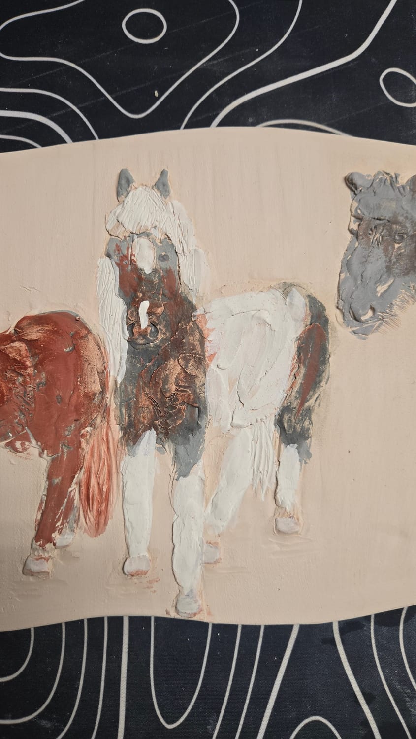 Auf Instagram stieß ich auf die Arbeiten von @emmatateceramics. Ihre Reliefs wirkten reduziert, klar und zugleich körperlich. Manche Wandfiguren waren nicht mal vollständig in Ton gearbeitet. Und doch sah ich ein ganzes Pferd.