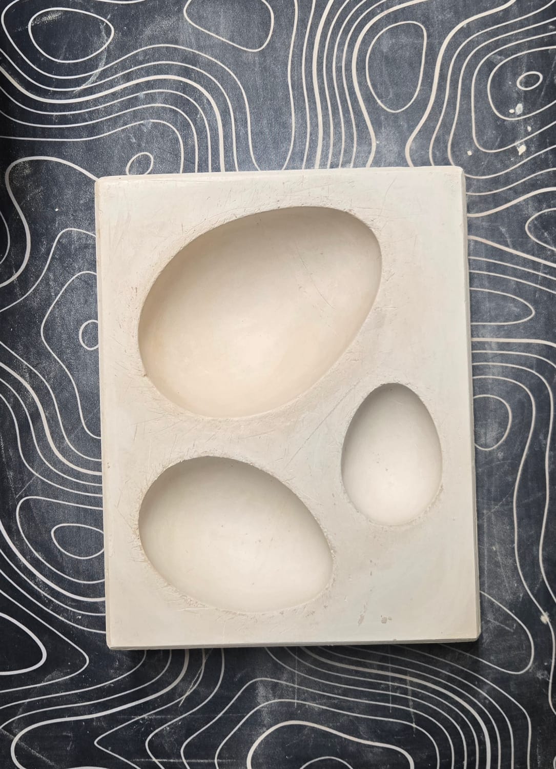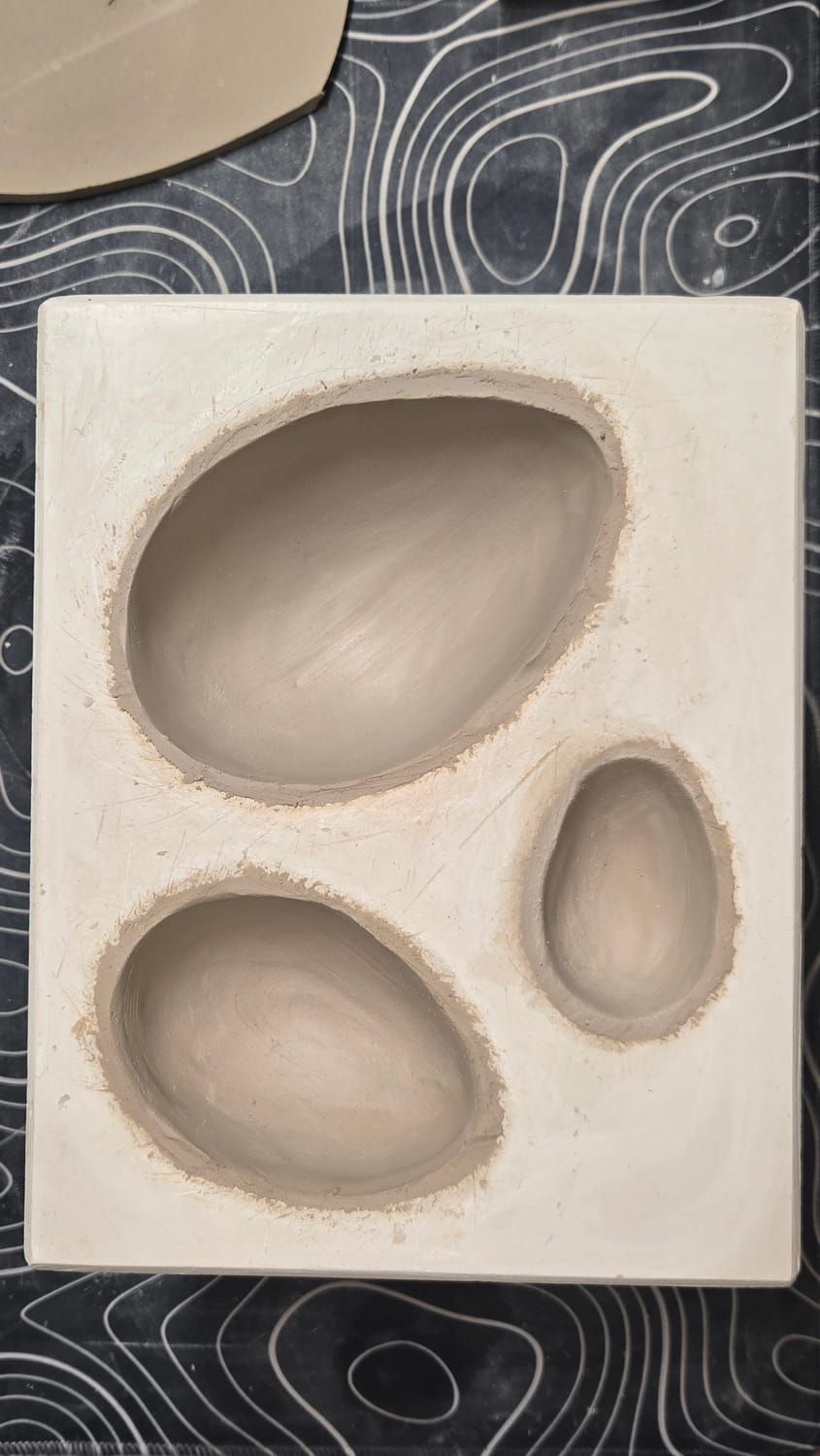Der Ton wird dort reingedrückt und erhält so seine Form. Wenn du eine Schale für Schmuck oder andere Kleinigkeiten töpfern möchtest, brauchst du zwei Hälften. Diese werden dann zu einem ganzen Ei verbunden.