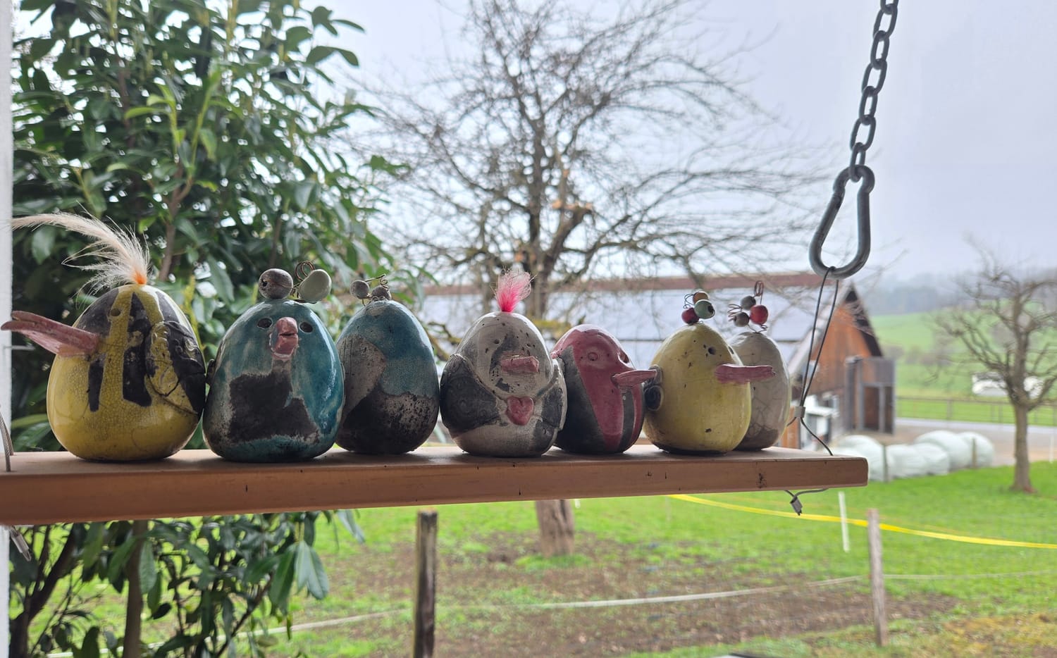 Meine kleinen, im Raku gebrannten Vögelchen sitzen mittlerweile schön auf ihrer Stange. Und das eigentlich das ganze Jahr über.
