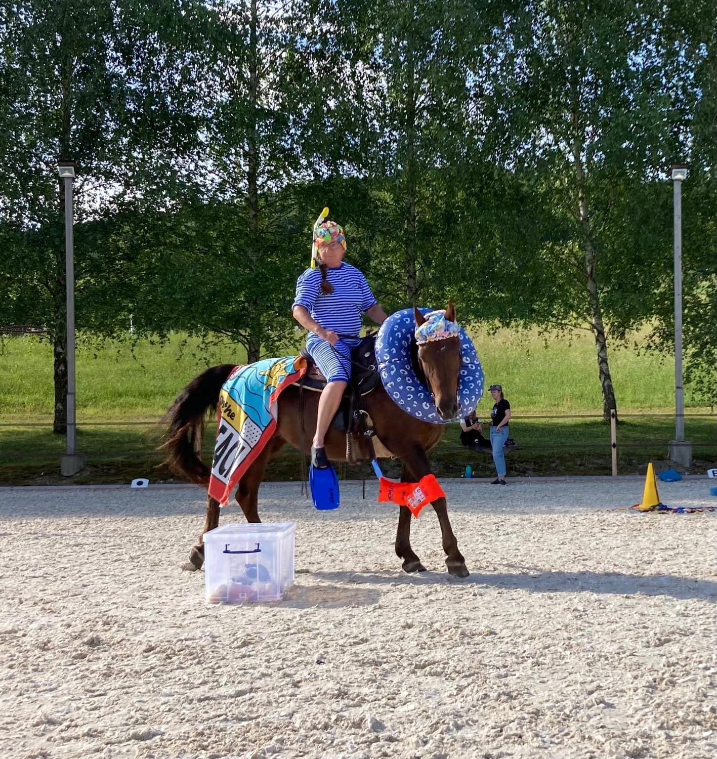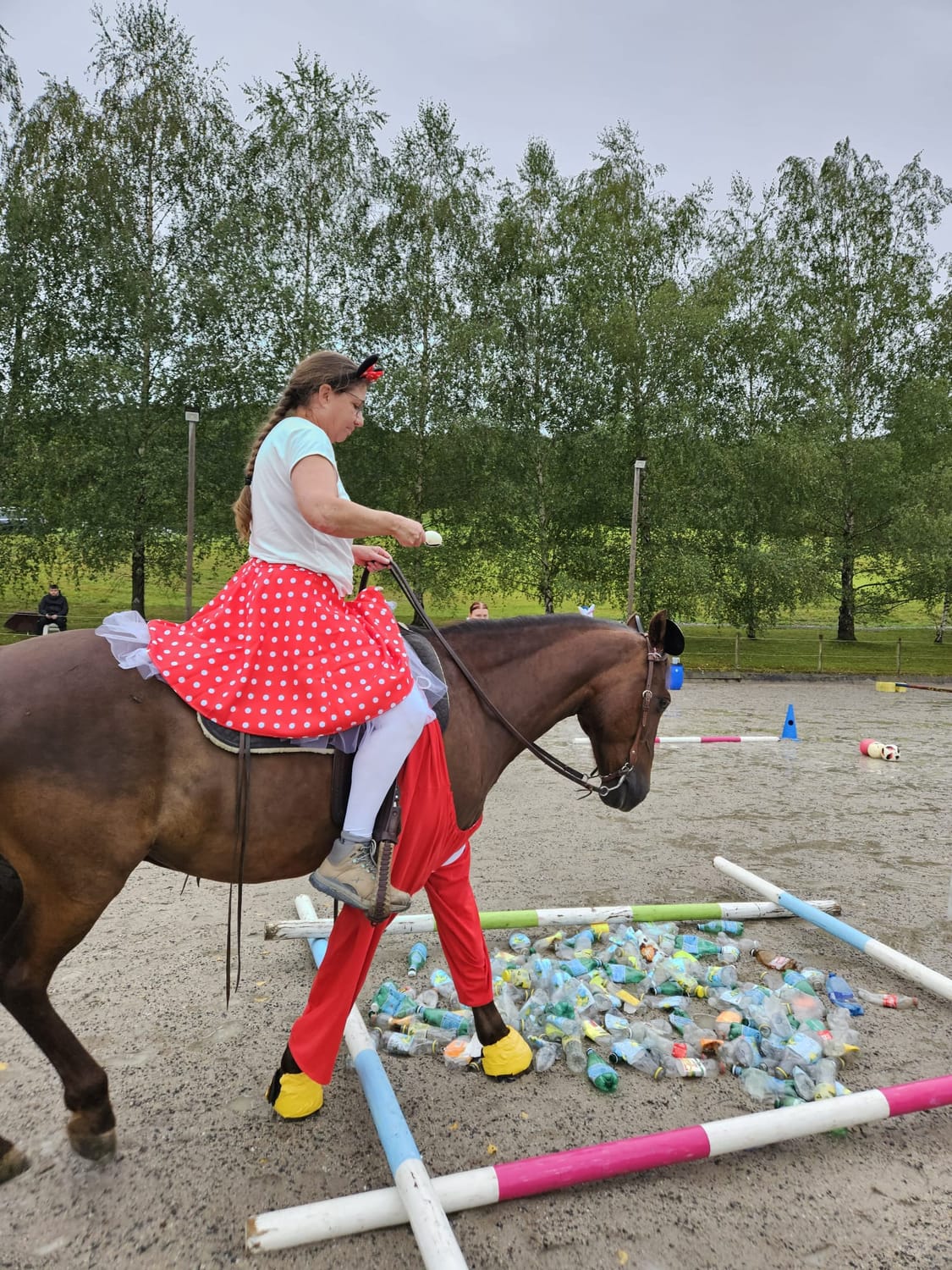 Seit gut zwei Jahren organisieren die Pensionärinnen wieder ein Gymkhana – kein klassisches Rennen, sondern ein Hindernisparcours, bei dem es um Geschicklichkeit, Präzision und das Zusammenspiel von Mensch und Pferd geht. Manchmal sogar verkleidet. Es geht mehr um Freude und Miteinander als um Leistung.
